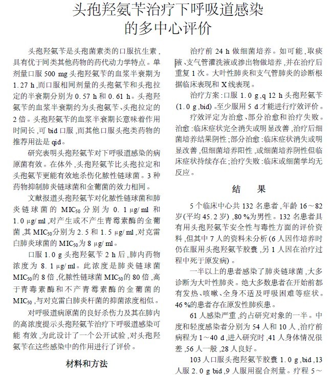 頭孢羥氨芐治療下呼吸道感染的多中心評價[2002]