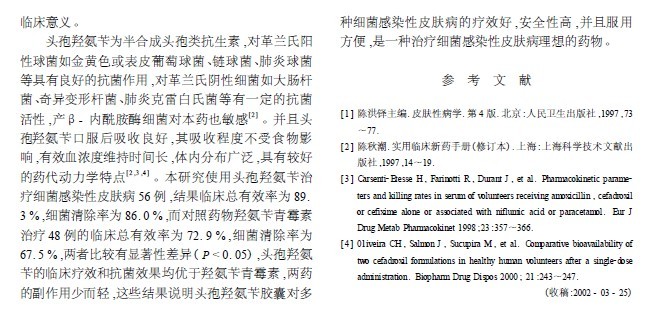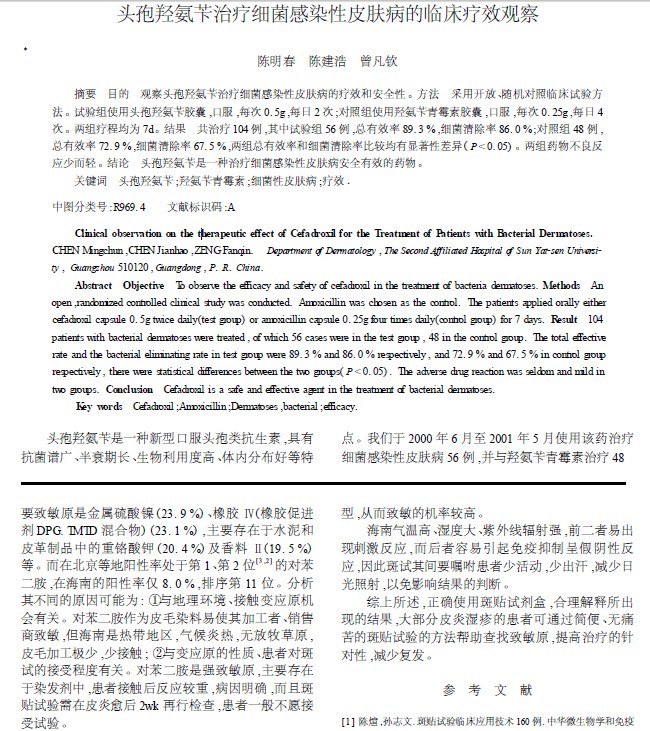 頭孢羥氨芐治療細菌感染性皮膚病的臨床療效觀察[2002]