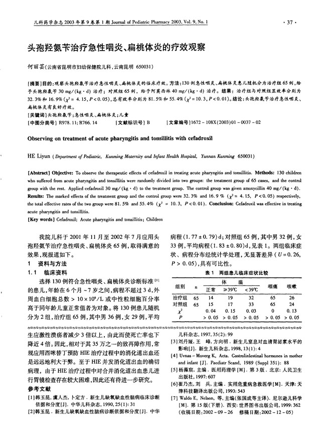 頭孢羥氨芐治療急性咽炎扁桃體炎的療效觀察——力欣奇