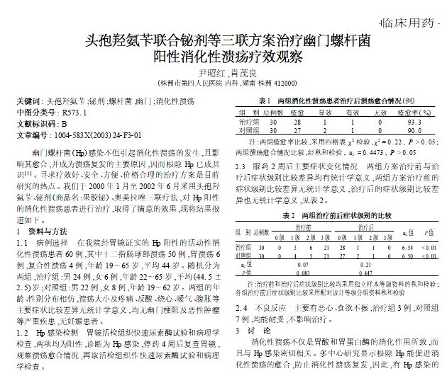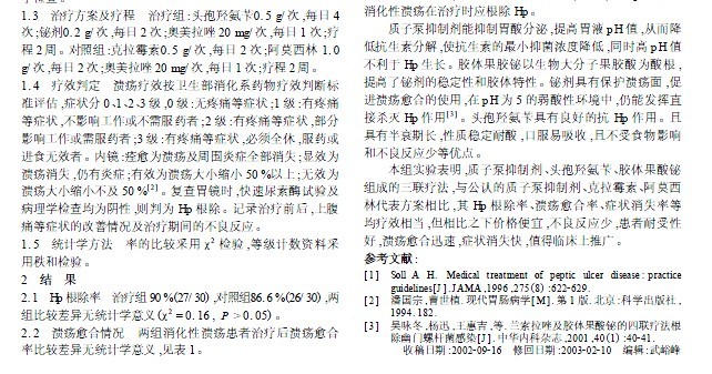 頭孢羥氨芐聯合鉍劑等三聯方案治療幽門螺桿菌陽性消化性潰瘍療效觀察