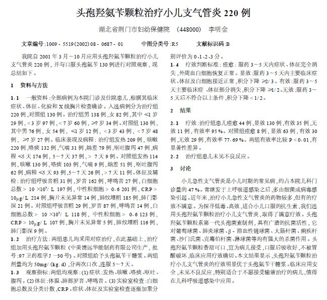 頭孢羥氨芐顆粒治療小兒支氣管炎220例力欣奇[2002]