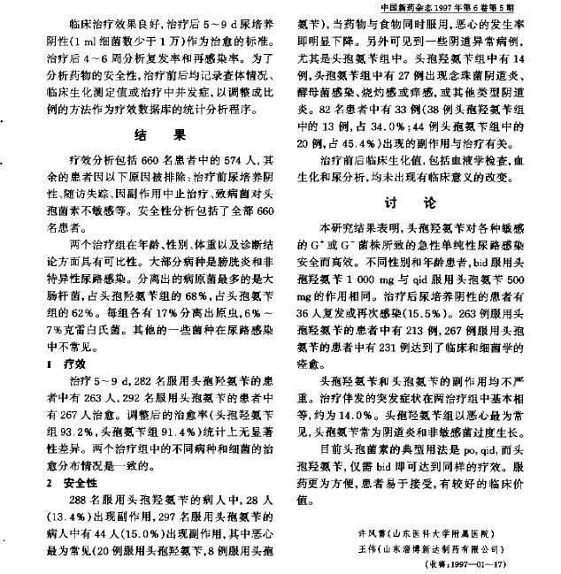 單純泌尿道感染中頭孢羥氨芐和頭孢氨芐的臨床療效比較