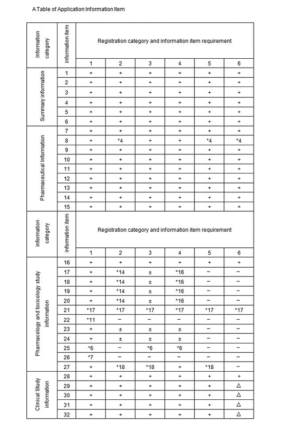 3. Information item 2-8, 12 and 15-18 should be usually submitted for application of generic drugs(except for TCM or natural drug injection where clinical trail is needed).